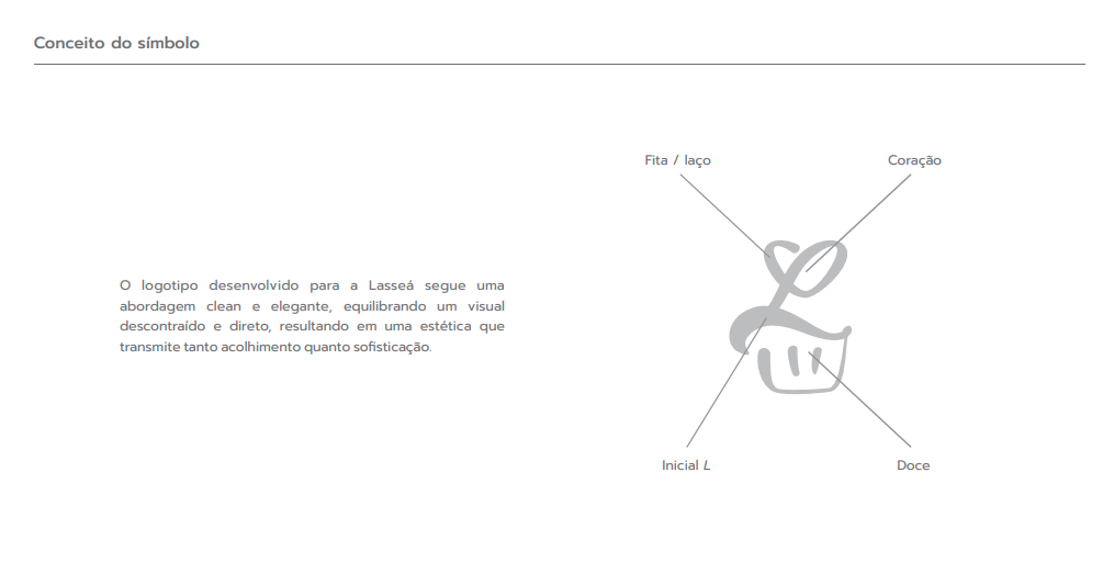 A identidade visual da Lasseá foi construída para transmitir aconchego e sofisticação em equilíbrio. O símbolo parte de uma composição sutil entre fita/laço, coração e a inicial “L”, representando a essência da marca: união, delicadeza e afeto. O logotipo adota uma estética clean e elegante, que dialoga tanto com a leveza artesanal quanto com a sofisticação aspirada pela marca.