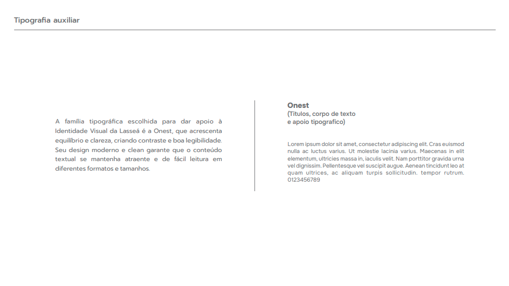 - Onest: moderna e clean, usada em títulos e textos de apoio, garantindo clareza, equilíbrio e ótima legibilidade em diferentes formatos .