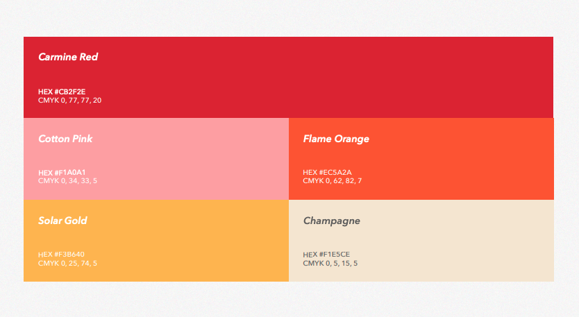 - Carmine Red (#CB2F2E) – intensidade, paixão e calor humano.
